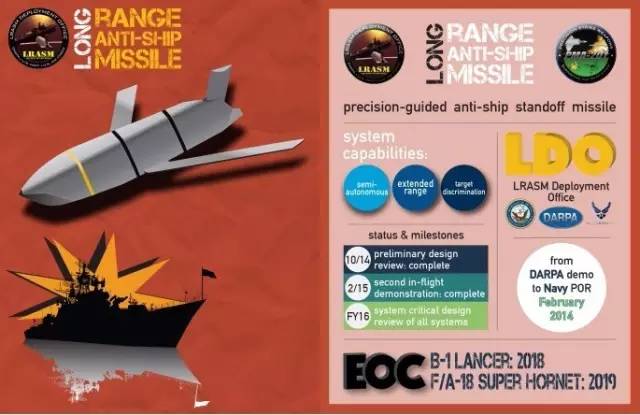美海軍航空系統(tǒng)司令部對(duì)AGM-158C“遠(yuǎn)程反艦導(dǎo)彈”的介紹,可見“LRASM部署辦公室”以DARPA為核心,美海軍和空軍均有參與;該項(xiàng)目是在2014年2月按照美國(guó)防部的指令由DARPA的演示驗(yàn)證項(xiàng)目轉(zhuǎn)為美海軍的在冊(cè)項(xiàng)目,此后DARPA的演示驗(yàn)證工作仍繼續(xù)進(jìn)行。成立LDO之后,DARPA繼續(xù)提供了轉(zhuǎn)化支持(美海軍航空系統(tǒng)司令部圖片)