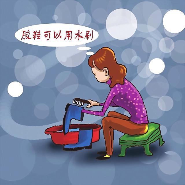 2、靴子:用抹布或舊衣服蘸水擦拭,用刷子刷,膠鞋可以用水洗。