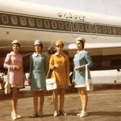 圖為伊朗航空的空姐在飛機前合影。