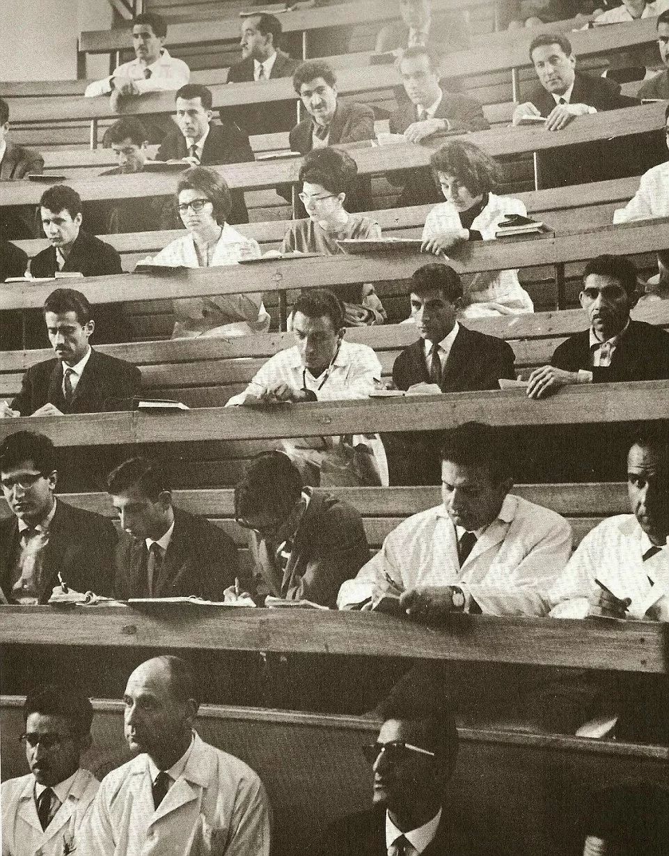 1960年代,德黑蘭大學醫學院課堂上,男生和女生在一個教室聽講。