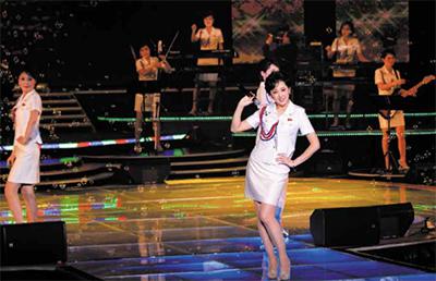 2014年3月28日,朝鮮平壤,牡丹峰樂團在血海歌劇團演出。