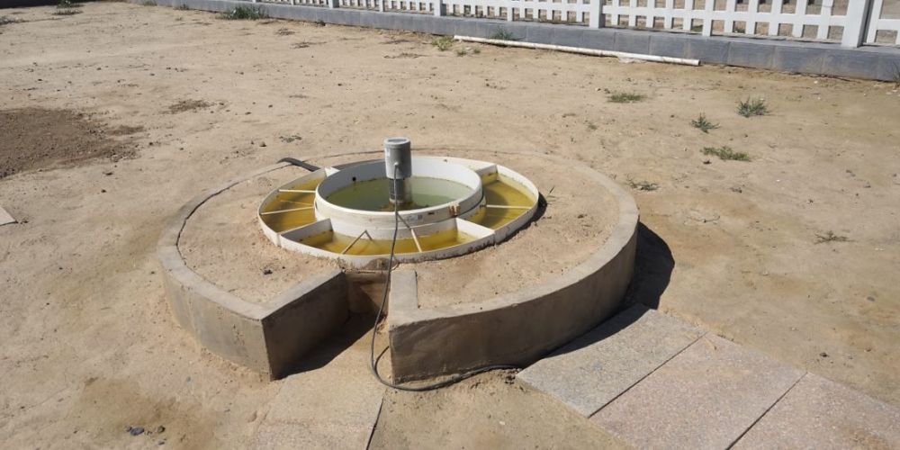 圖2. 敦煌氣象局大型蒸發(fā)器(E-601B型蒸發(fā)器),干旱的敦煌年潛在蒸發(fā)量約為2500毫米。