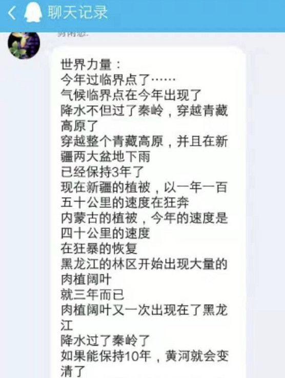 我國西北地區(qū)大多處于非季風(fēng)區(qū),降雨較少,氣候干旱,自古以來有不少詩歌描寫了邊塞雄偉壯闊又荒涼寂寞的景象。然而最近,西北地區(qū)變濕變暖成了個熱點話題:朋友圈里流傳的一張聊天截圖讓人熱血沸騰,“氣候臨界點在今年出現(xiàn)了……”、“新疆的植被,以一年一百五十公里的速度在狂奔”、“降水過了秦嶺了,如果能保持10年,黃河就會變清了……”。一些媒體也給出了大標(biāo)題“真正的大事:寒冷干旱的中國西北正在變暖變濕”。