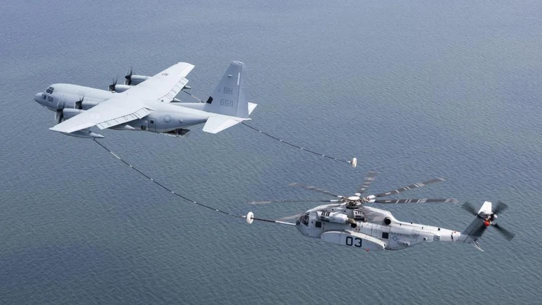 2020年4月6日,海軍陸戰隊CH-53K“種馬王”在美國東海岸中部的切薩皮克灣上空進行了空中加油測試,測試持續了4.5個小時,負責進行空中加油的是一架KC-130J加油機。測試期間,CH-53K“種馬王”直升機與KC-130J加油機伸出的空中加油錐套成功對接,但并未進行燃料傳輸。項目主管官員認為這場測試非常成功,證明CH-53K是遠程垂直后勤的主力,成功展示了海軍陸戰隊的遠程后勤保障能力。尾流測試則評估了該直升機在強湍流空氣中,在加油機后方飛行時的性能。