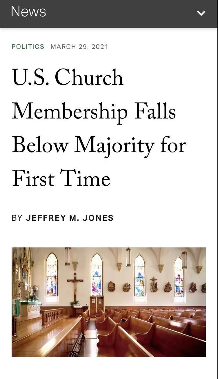 3月29日,美國民調(diào)機(jī)構(gòu)蓋洛普(Gallup)發(fā)布的一項民調(diào)顯示:2020年,美國教會成員(Church Membership)在成年人中的比例首次跌破50%,創(chuàng)下有記錄以來的最低水平。
