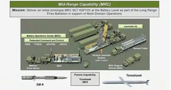 2022年12月5日,美陸軍接收了首個陸基“中程火力”(MRC)連。交付硬件為一套完整的“陸基中程火力”地面設備和重裝填能力,包括一個連級作戰(zhàn)中心,四輛發(fā)射車以及拖車。預計在完成系統(tǒng)測試、培訓和交付導彈后,該導彈連將在2023財年形成作戰(zhàn)能力。在硬件系統(tǒng)交付后,美陸軍在圣誕節(jié)后將進行設備訓練,系統(tǒng)建立理論,并制定戰(zhàn)術、技術和作戰(zhàn)程序。