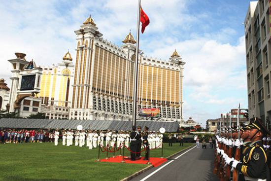 一茬茬的新哨兵們,已經(jīng)習(xí)慣了每次值崗時,一人看著威尼斯人,一人看著銀河(注:氹仔島上的兩座豪華賭場)。100米開外,每天川流不息的大巴裹著人群,來了又去,經(jīng)夜不止。似乎大部分人沒有留意,近旁飄揚(yáng)著的八一軍旗。