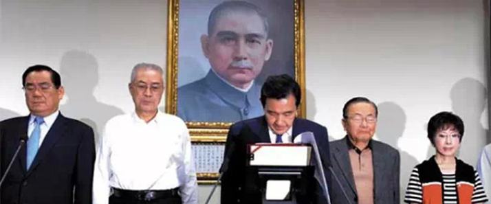 2014年11月29日晚,“九合一”選舉國民黨慘敗,國民黨主席馬英九率黨內干部晚間在中央黨部舉行記者會, 向支持者及黨員鞠躬致歉。