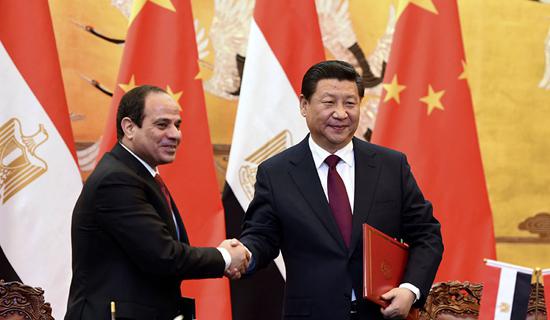 塞西訪華前,埃及專門成立了由總理易卜拉欣·馬赫萊卜牽頭的“中國(guó)事務(wù)內(nèi)閣小組”,顯然對(duì)來自中國(guó)的投資充滿期待。中埃雙方已在建設(shè)鐵路網(wǎng)、太陽能發(fā)電站等項(xiàng)目達(dá)成共識(shí),電力、新能源、民航領(lǐng)域的合作也是題中之義?;I(lǐng)域的合作是埃及政府恢復(fù)經(jīng)濟(jì)建設(shè)的關(guān)鍵環(huán)節(jié),有助于其擺脫近年陷入的經(jīng)濟(jì)困境。蘇伊士運(yùn)河拓寬及周邊區(qū)域開發(fā)的計(jì)劃有望發(fā)展新的全球交通咽喉,新開挖的河道將同原來的一并連通地中海與紅海,與中國(guó)經(jīng)由蘇伊士運(yùn)河來抵達(dá)歐洲的愿景不謀而合。埃及目前是中國(guó)在非洲的第三大出口國(guó),很快即可成為最大出口市場(chǎng),而中國(guó)更是埃及最大的貿(mào)易合作伙伴,雙方的合作對(duì)于加強(qiáng)中國(guó)與非洲及地中海的合作、推廣“海上絲綢之路”戰(zhàn)略有至關(guān)重要的作用。