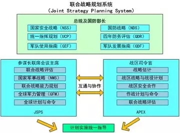 在國家戰略指導系統架構下,聯合戰略規劃系統是參謀長聯席會議主席負責實施的主要戰略規劃系統,這個系統是美軍軍事戰略規劃的實施層核心。