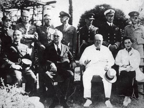 1943年11月開羅會議上蔣介石夫婦與羅斯福、丘吉爾的合影