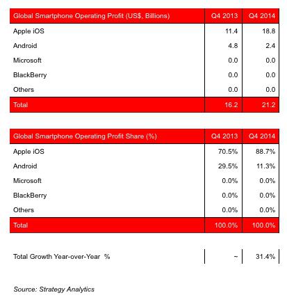 三星電子依靠銷售高溢價(jià)的智能手機(jī)的盈利能力越來越低,最終嚴(yán)重下降到今年第四季度的約6%水平。而在只有一人的iOS陣營,蘋果拿走了整個(gè)智能手機(jī)行業(yè)88.7%的利潤,大約有212億美元當(dāng)中的188億美元。