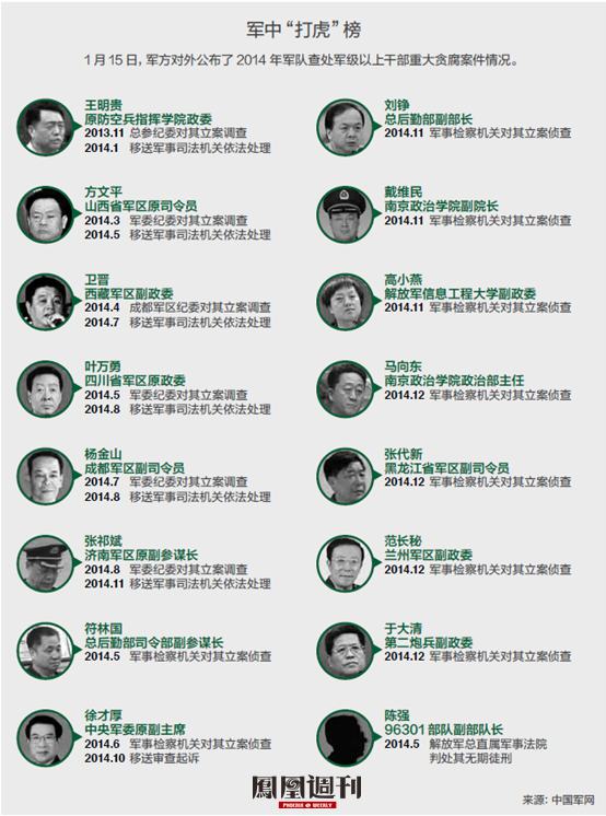 這次調(diào)整不僅僅只是將領(lǐng)們年齡、資歷、軍齡的角力,也是繼2014年軍隊反腐整飭后的軍隊人事重要布局。去年末開始的這番調(diào)整之后,今年1月15日,軍隊權(quán)威部門更是罕見地公布了軍隊反腐的16人“打虎”榜,顯現(xiàn)新一屆中共領(lǐng)導(dǎo)人對軍隊和政局掌控的足夠自信和對下一階段軍中反腐的決心。