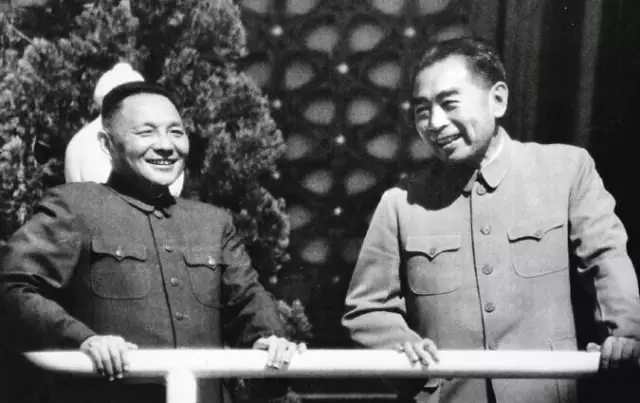 1952年,初任政務院副總理的鄧小平(左)和周恩來暢談