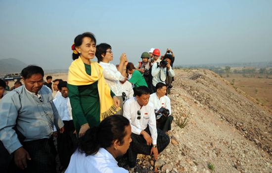 2012年下半年,緬甸部分極端人士抗議中緬合資的萊比塘銅礦存在征地補償不夠、破壞環境等問題,沖擊銅礦作業區,迫其停產并接受調查。昂山素季領導的調查委員會經過科學調查和實地走訪,2013年3月中旬公布調查報告,稱銅礦項目不存在嚴重問題,在增加征地補償、改善環保措施等之后,可以繼續。昂山素季在報告公布后,還親自到銅礦工地安撫當地民眾,呼吁他們不要繼續示威,不能隨意損害中國和其他國家外資的利益,否則緬甸國家便會因為撕毀合約而喪失國際信譽,嚇跑投資者。
