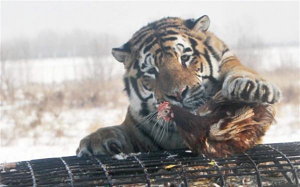 它和另外八頭孟加拉虎、三頭獅子、14只豹子以及三只禿鷲,幾乎完全在以熱量低得多的雞肉為食物。