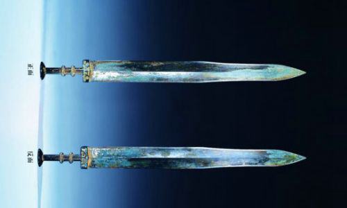 但在江蘇南部到浙江北部地區出土的同一時期青銅短劍,卻與中原地區的劍有明顯區別。劍莖實芯,有的飾有花紋,莖端有較大的圓首,劍身中脊隆起,前鋒尖細,兩側刃已呈現兩度弧曲的雛形。這種側刃的弧曲,是吳越青銅劍最主要的特征之一。