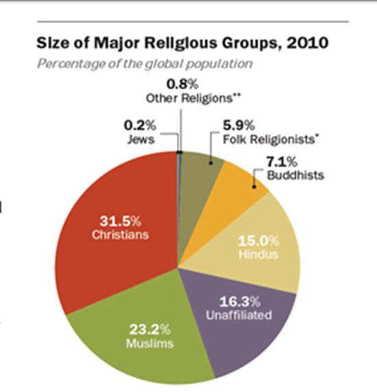 主要宗教在世界人口中的比例(2010年)