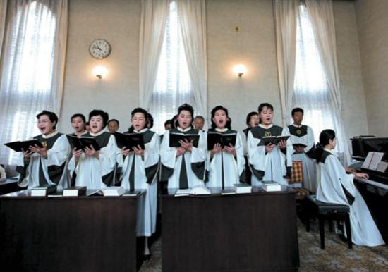 圖:位于平壤的新教教堂。朝鮮曾在全球十大基督教徒受逼迫最嚴(yán)重的國家中多年“蟬聯(lián)”首位。