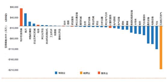 圖4 除了小部分例外,美國(guó)高端產(chǎn)業(yè)貿(mào)易逆差顯著