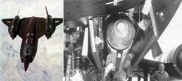當前已知的、具有可重復性的高速飛行條件下武器投放,速度最快的紀錄由美國空軍YF-12高速截擊機(左)保持,1965-1966年,該機累計進行7次超聲速發射有動力AIM-47空空導彈(右圖為YF-12截擊機內埋彈艙中的該導彈)的試驗,發射速度馬赫數2.2- 3.2,其中6次成功(唯一失敗的一次是因為導彈自身動力出現問題)。其中最后一次是在飛行速度馬赫數3.2、高度22-23千米的條件下完成成功發射,擊落了一架飛行高度僅152高的JQB-47E靶機(美國空軍圖片)