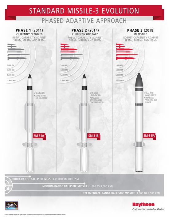 SM-3聯合研制項目于2006年啟動,美國雷聲公司負責硬件和系統研發及集成,日本三菱重工公司負責研制第二和第三級火箭發動機、方向控制和導彈頭錐部。與現役SM-3相比,SM-3 Block IIA攔截導彈口徑為21英寸,使用更大的火箭發動機和能力更強的攔截彈,在速度、射程、尋的靈敏性和動能彈頭能力方面都大大提升。SM-3 IB攔截導彈只能對付近程彈道導彈,射程3000km;而SM-3 IIA攔截導彈能夠對付中型及中程彈道導彈,射程達5500km,并將作為美國“歐洲分階段自適應路線”階段3導彈防御系統的一部分,計劃在2018年之前部署到“宙斯盾”戰艦和“岸上宙斯盾”系統上。(北方科技信息研究所 齊夢曉)