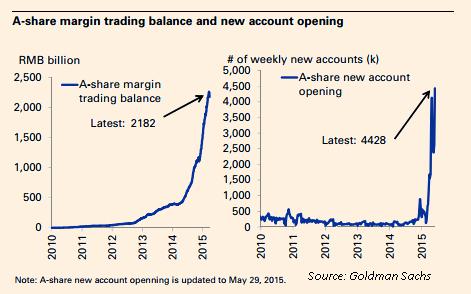 近期中國股市行為的泡沫特征已經明顯存在了一段時間。通過融資購買股票的保證金交易已上升到總市值的8%以上,用任何國際標準衡量都是異常高的水平。今年迄今新設立的交易賬戶數量上升了10倍。