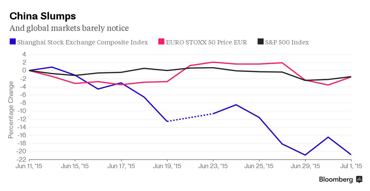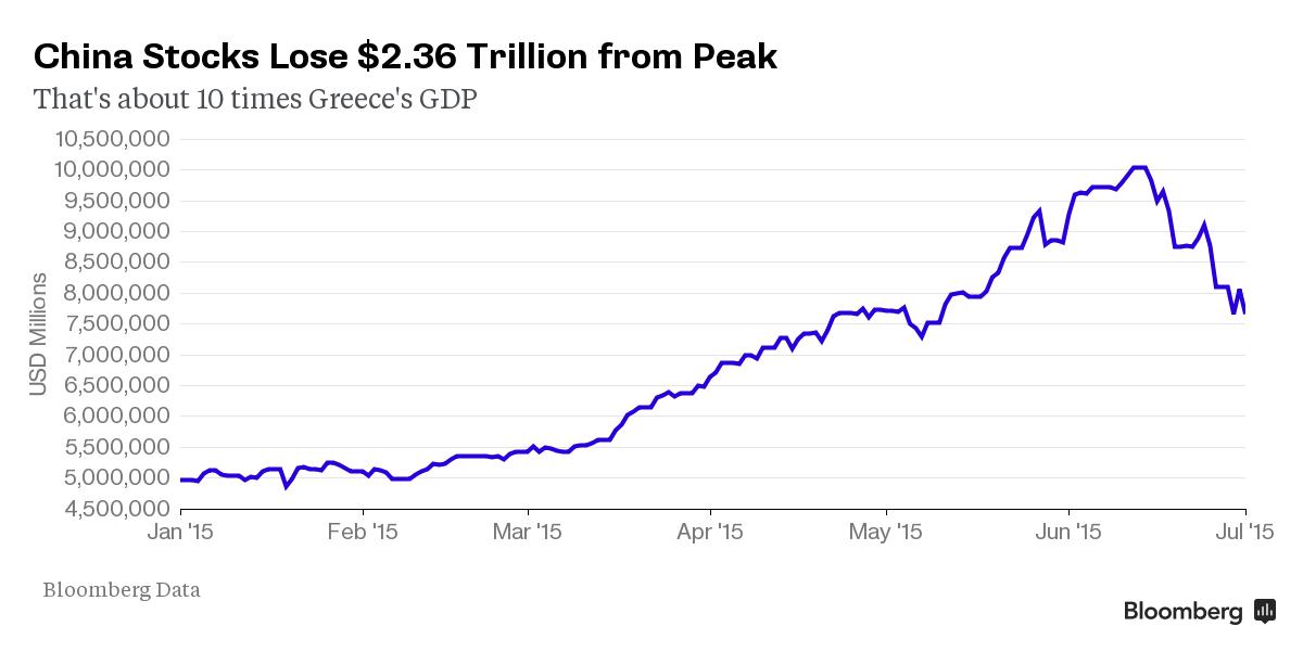 在過去三周,中國股市蒸發(fā)的市值已經(jīng)達(dá)到23600億美元——相當(dāng)于希臘去年GDP的10倍。