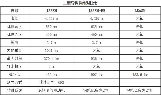 美國(guó)一直沒(méi)有給出LRASM的具體射程指標(biāo),DARPA稱導(dǎo)彈可用于攻擊射程370千米距離外的海上目標(biāo),但從下面兩種考慮推測(cè),LRASM射程可能更遠(yuǎn)些。其一,LRASM的彈體結(jié)構(gòu)源自JASSM-ER,JASSM-ER的氣動(dòng)性能和隱身能力已得到廣泛認(rèn)可。JASSM-ER導(dǎo)彈的戰(zhàn)斗部質(zhì)量為450千克,射程為926千米,因此為滿足防區(qū)外發(fā)射對(duì)射程的要求,LRASM導(dǎo)彈的射程可能與其相當(dāng)。其二,從LRASM作戰(zhàn)應(yīng)用想定考慮,同時(shí)參考美國(guó)《有關(guān)中國(guó)安全發(fā)展的年度報(bào)告》中解放軍具備常規(guī)里圈防御縱深600千米、中圈防御縱深2000千米的“反介入”能力,可以推測(cè)LRASM導(dǎo)彈的射程要求至少在600千米以上。