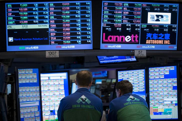 Specialist traders work at a Virtu Financial booth on the floor of the New York Stock Exchange