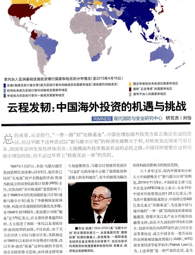 總的來看,從亞投行、“一帶一路”到“絲路基金”,中國在增加海外投資方面正在做出有益的嘗試,但過早賦予這種嘗試以“新馬歇爾計劃”的稱謂實屬弊大于利。對歐美發(fā)達國家乃至日本、韓國等亞洲先發(fā)經(jīng)濟體而言,大規(guī)模海外投資都是有益的必經(jīng)之路,中國同樣需要在這種歷練中增加經(jīng)驗,而不必過早背上“勝敗在此一舉”的負擔。