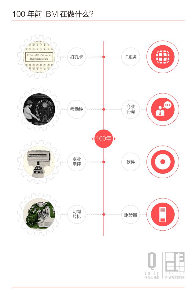 雖然看起來產品極其不同,不過 100 年前 IBM 的核心仍然是商業和機器——但一個世紀之后,商業和機器的概念都在現代社會發生了巨大轉變。