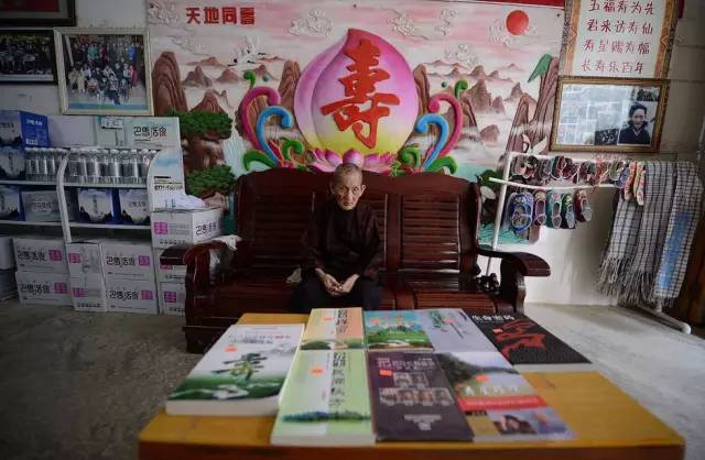 ▍在廣西巴馬縣坡月村,115歲的黃卜新老人是目前長壽村年齡最大的百歲老人,他坐在椅子上,周圍擺滿了銷售品。圖片來自騰訊新聞《圖話》:廣西巴馬長壽村