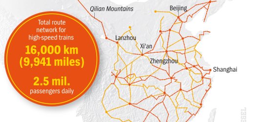 僅僅八年前,中國第一列超高速列車開始運營,而現(xiàn)在,整個高鐵網(wǎng)絡(luò)線路長達16000公里,全國有8條高速線路構(gòu)成。每天有約250萬乘客在這些線路上,在2014年底前共有30億人次使用。中國有最長、海拔最高的高鐵,最長的鐵路橋橫跨164公里,也是世界最長。