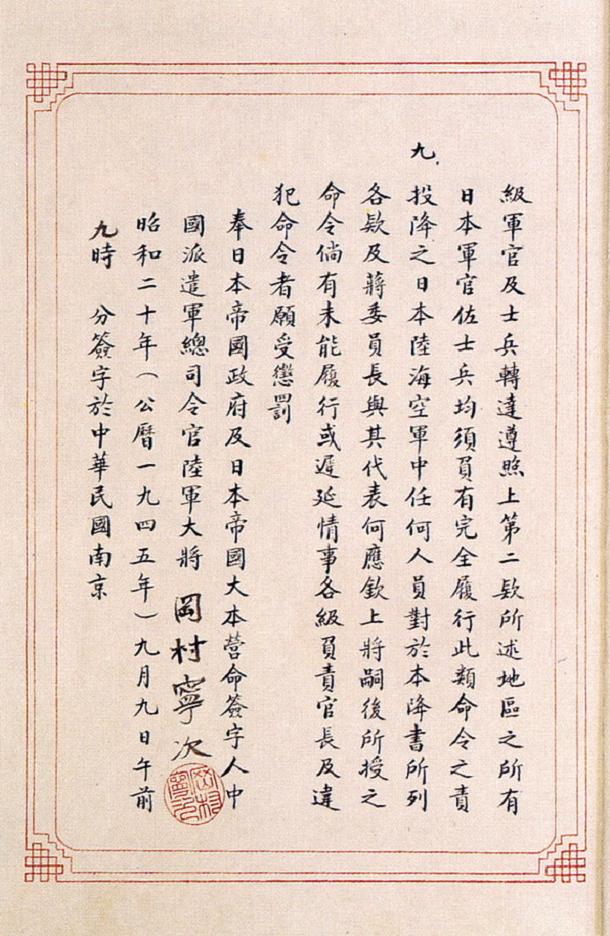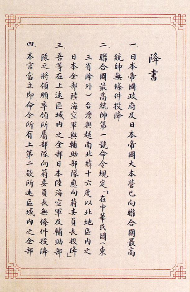 日本向中國(guó)投降的降書(shū)
