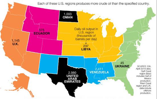 忘記歐佩克吧,迎接新的石油生產國聯盟:石油合眾國(The United States of oil)。美國目前日均生產石油840萬桶,較六年前高出三分之二,盡管仍低于俄羅斯,但已是伊朗和加拿大石油產量的兩倍多。僅德克薩斯一州石油產量就超過阿聯酋、墨西哥和尼日利亞。