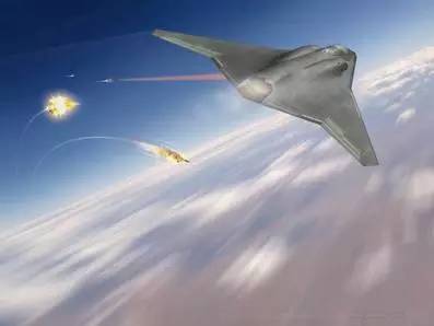 諾格公司最新公布的美國空軍六代機(jī)F-X概念方案。圖中可見該機(jī)用高能激光武器連續(xù)射擊多個目標(biāo)。這正是此次諾格公司著力強(qiáng)調(diào)的,只有采用新型熱管理技術(shù),才能確保機(jī)載激光武器多次快速連續(xù)發(fā)射(美國諾格公司圖片)
