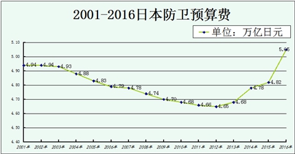 新華網北京1月13日電(記者 郭丹)2015年年末,日本內閣批準通過了2016財年預算案,其中防衛預算高達5.05萬億日元(約合420億美元)。這是日本自衛隊自1954年成立以來首次突破5萬億日元大關,也是自2012年年底安倍晉三第二次上臺3年來日本軍費第四次大幅增加。