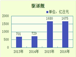 2015年3月25日,日本“出云”號DDH驅逐艦正式加入日本海上自衛隊服役,同年9月25日,即新安保法通過前夕,“加賀”號DDH驅逐艦正式下水。2015年和2016年的防衛預算中,日本又投入大量資金,準備每年建造1艘DDG宙斯盾級驅逐艦,該艦的作戰能力和隱身能力較DDH型更勝一籌,而所需經費也比DDH型高2倍多。