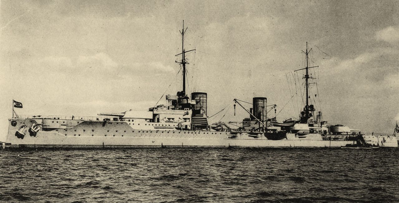 1897年,重巡洋艦“俾斯麥大公”號在基爾皇家造船廠水下,排水量達1 0690噸,長127米,武備為240毫米主炮4門,150毫米炮12門,88毫米速射炮10門及3具魚雷發射管。主機為3部蒸汽機,雙煙囪,航速18.7節。該艦在1900年至1908年間隸屬東亞艦隊,第一次大戰時成為靶艦,1920年解體。