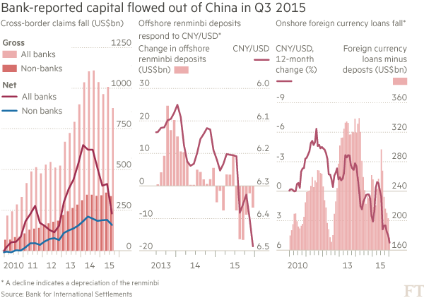 國際清算銀行的分析涵蓋了去年第三季度,中國的外匯儲(chǔ)備在這一時(shí)期內(nèi)下降了大約2850億美元(不過,這其中部分縮水要?dú)w因于以歐元和日元等貨幣計(jì)價(jià)的外儲(chǔ)估值的下降,這些貨幣在該季度均相對(duì)美元下跌)。