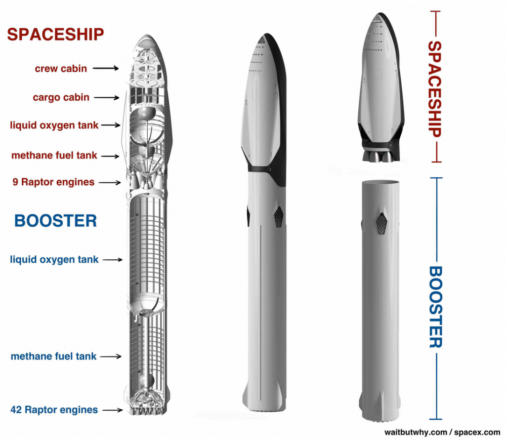 此刻需要澄清一下:我剛剛一直在說的巨型火箭事實上是由兩部分組成的:一個巨型飛船安在一個巨型助推器上。